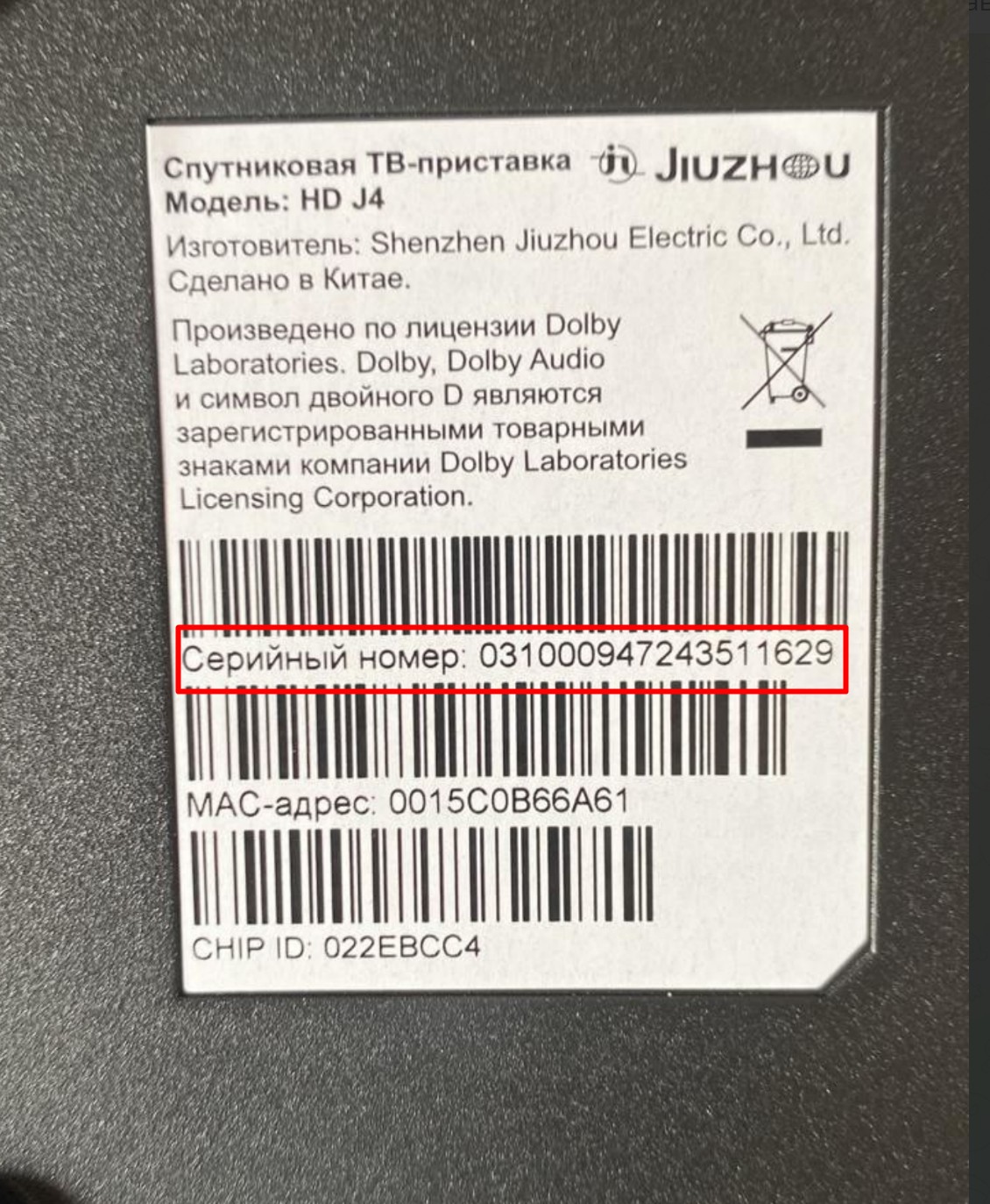 Номер ТВ-приставки находится на задней или нижней панели, номер ТВ-модуля находится на лицевой стороне модуля.